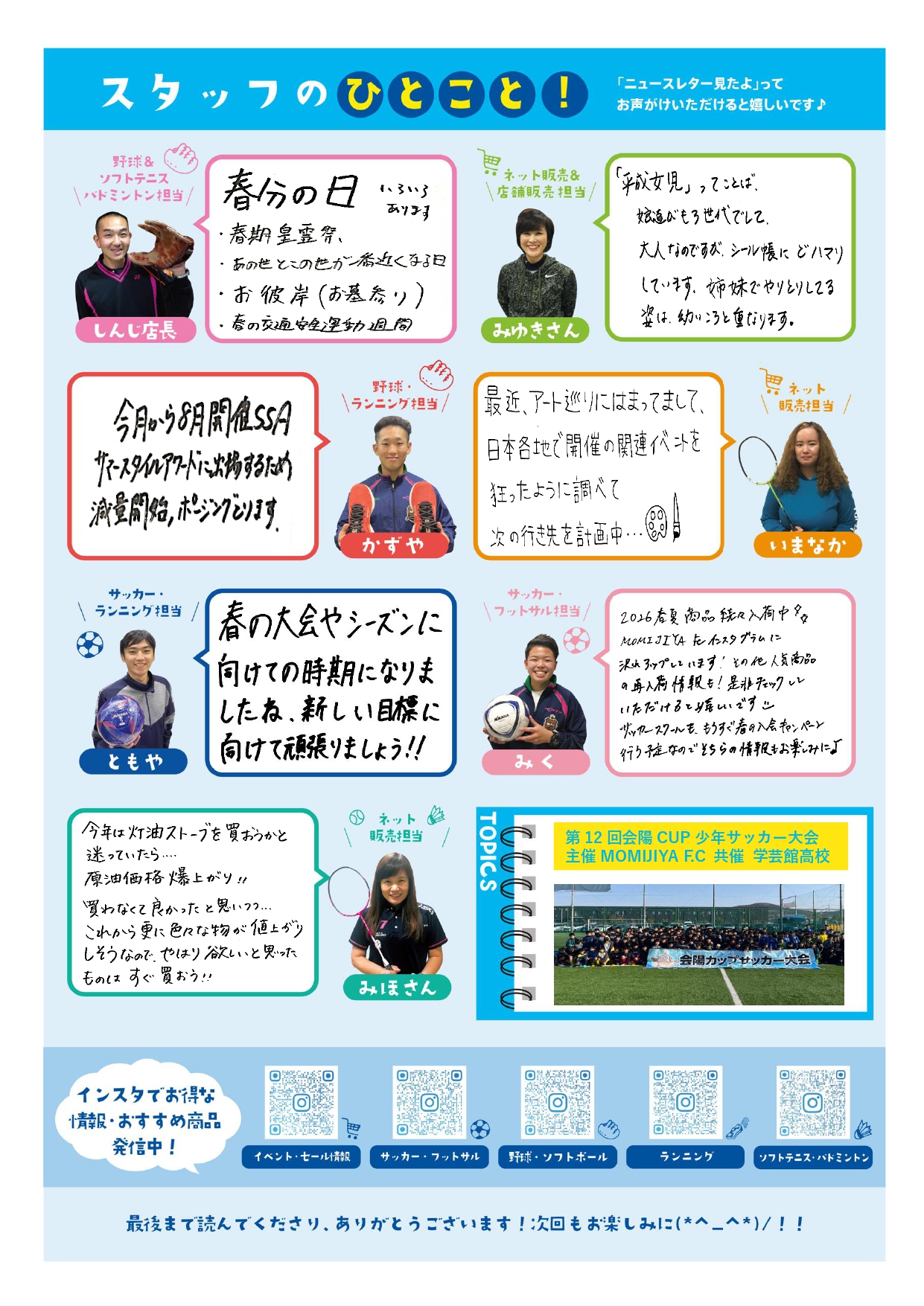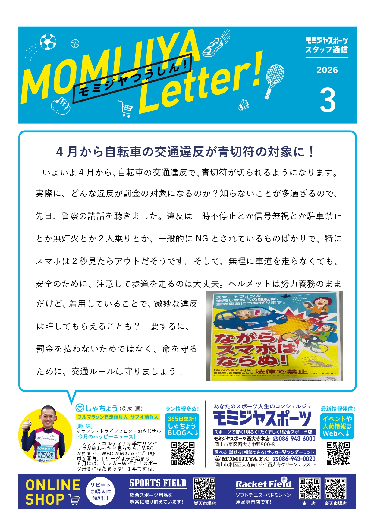 ニュースレター「モミジヤつうしん」 3月号、期日より1日早く発刊 させていただきます!